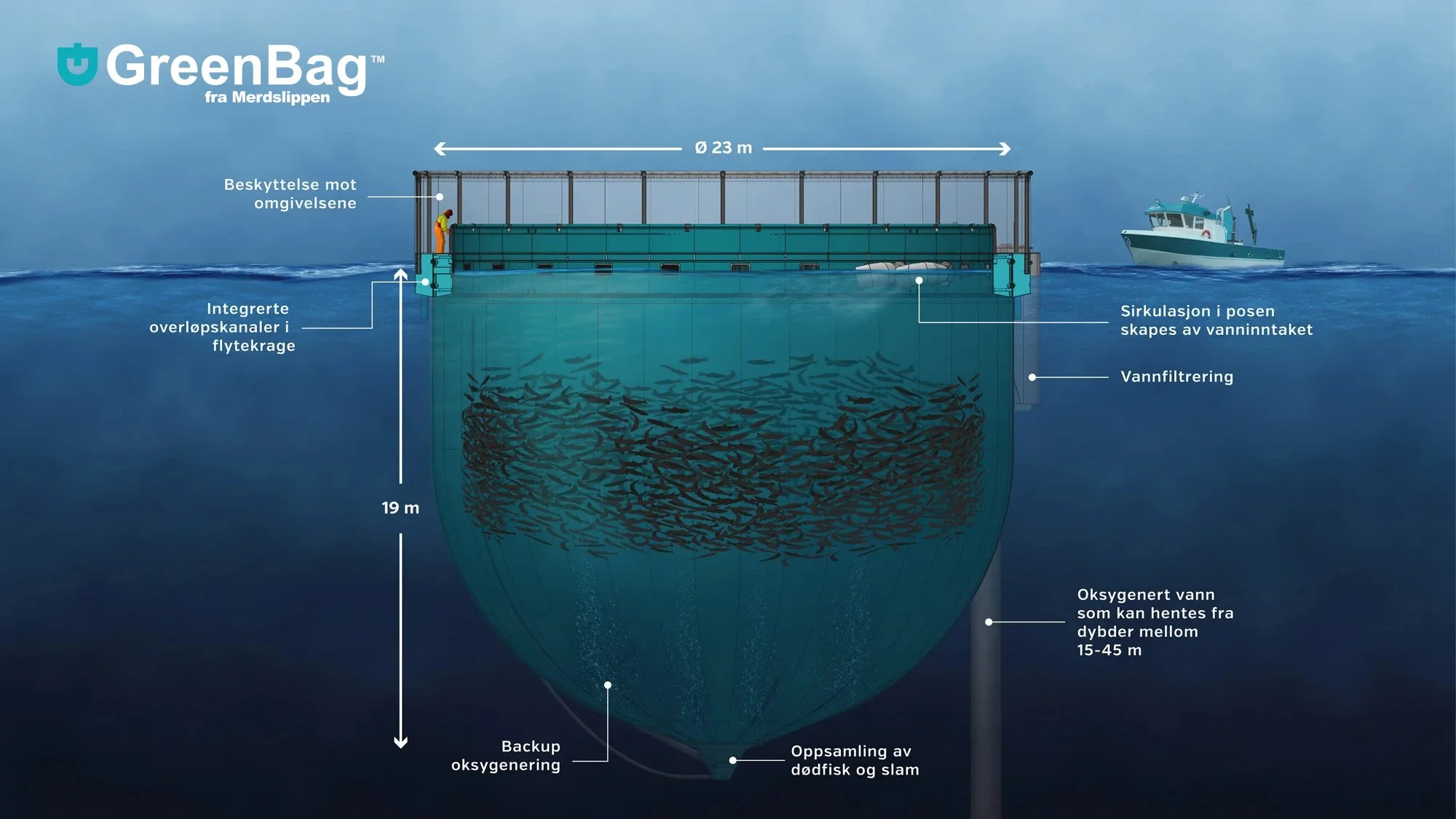 GreenBag er en lukket posemerd, som gir oppdretter bedre kontroll. Vann inn kan filtreres og UV-behandles, slik at lus unngås, og slam i utgående vann samles opp. Dybdejusterbart vanninntak gir mulighet for temperaturoptimalisering og bedre vekst. Null fôrspill og frisk fisk gir bedre lønnsomhet. GreenBag™ legger til rette for god fiskevelferd og effektiv matproduksjon samtidig som det ytre miljøet ivaretas.